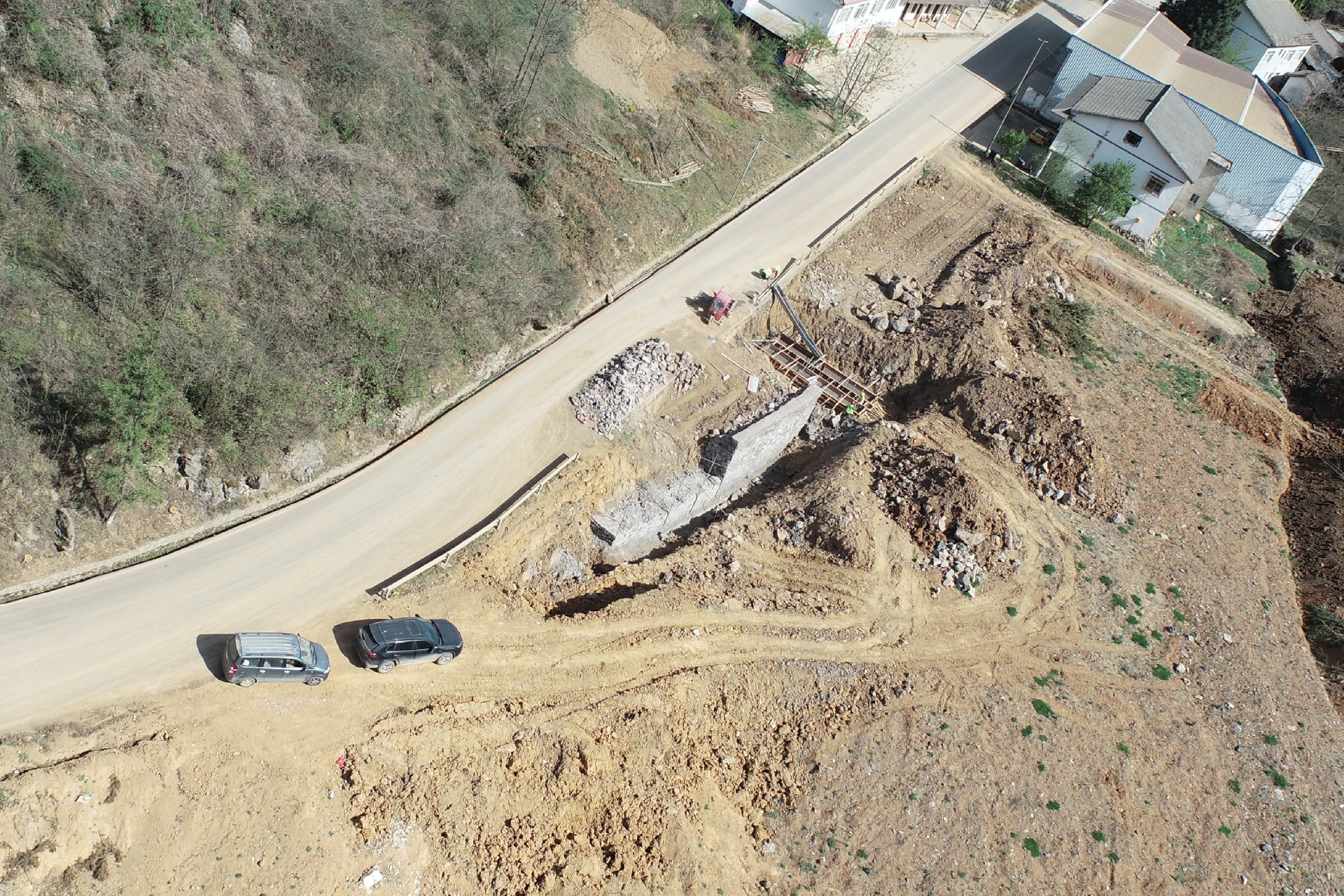 目前正在進(jìn)行主線路基開挖,完成蓋板涵預(yù)制85塊,占總數(shù)52%;擋防工程5023方,占總數(shù)31%;土石方開挖6.5萬方,占總數(shù)12%,利用土石方1.5萬方,占總數(shù)11.5%;場鎮(zhèn)段400米右幅底層6cm油面鋪設(shè)。